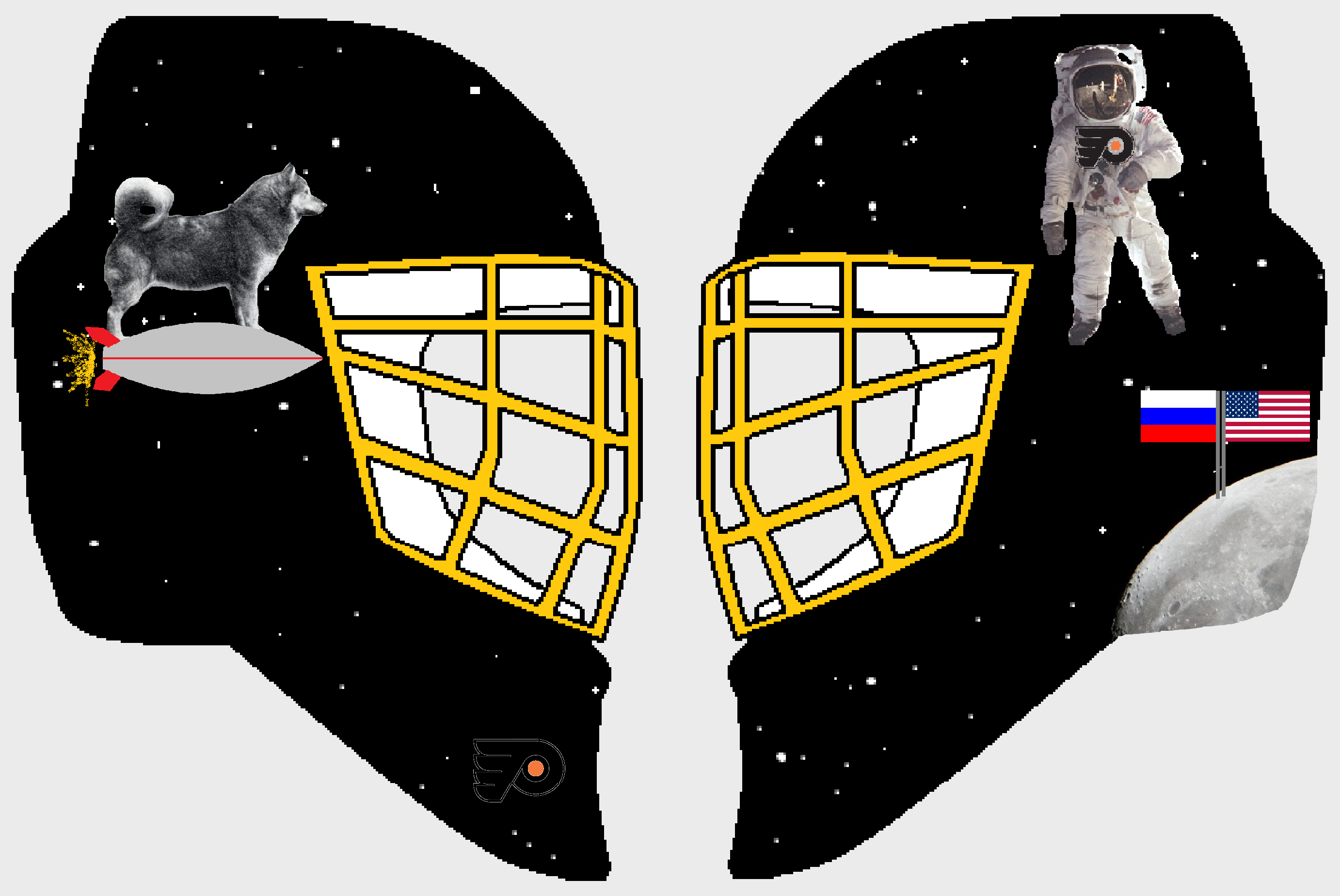 Bryzgalov’s recent masks have matched themes from Philadelphia, Russia, fighter jets, historical figures… but why? His dream job is astronaut. So here’s an idea of how the Ilya Bryzgalov Mask In Space might look: