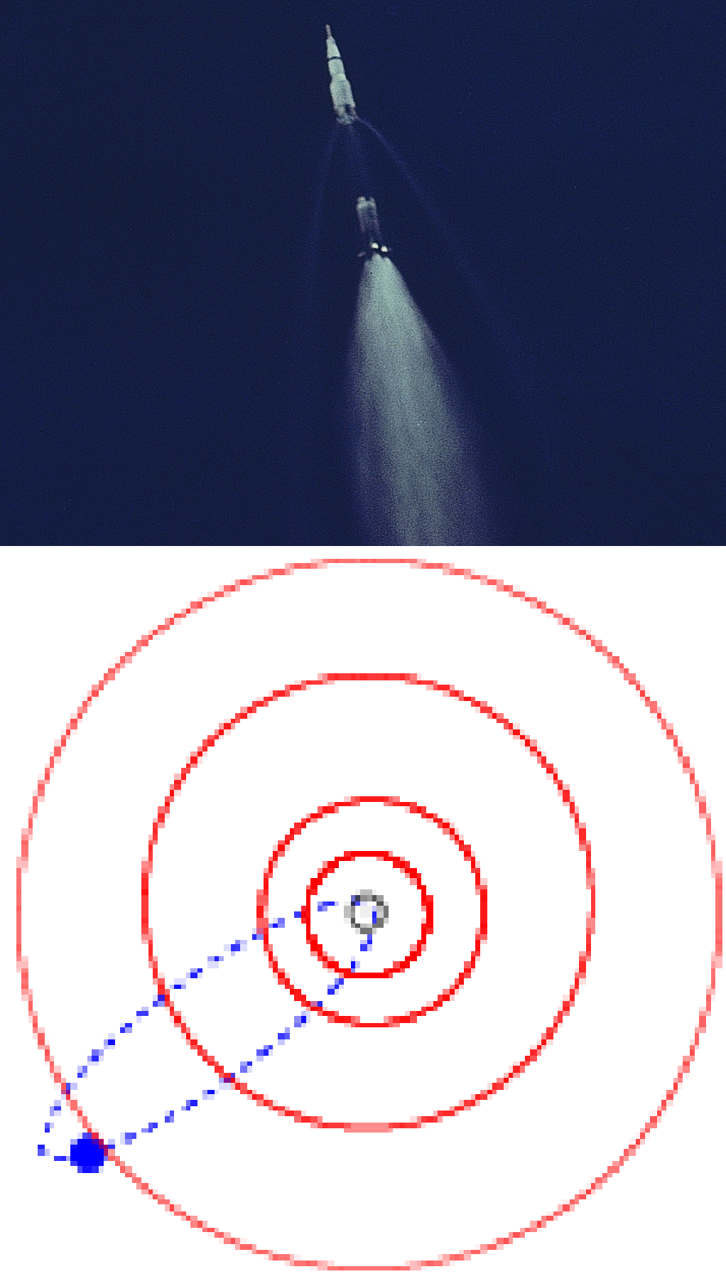 The Howard Indecision Rocket enters orbit as stage one detaches and falls back into the atmosphere. The Sixers give up a first round pick based on a previous trade and the current location of Halley's Comet. (Nasa/Free and WilyD via Wikimedia, GNU)